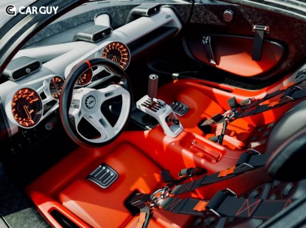 실내에서는 아날로그 컨셉답게 전동식 버튼을 찾아보기 힘들다. 완벽히 둥근 모양의 스티어링 휠에도 버튼이 일절 없다. 드라이브 모드도 없다. 변속기는 기둥 모양의 시프트 노브를 사용한다. 실수로 후진 기어에 놓는 것을 방지하는 잠금장치도 존재한다. 시트는 고정식이다. 페달 박스, 헤드레스트, 사이드미러 등은 아날로그적 레버와 스위치를 통해 수동으로 조절된다.