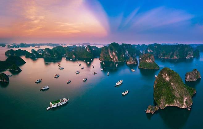 베트남 북부의 자존심이라 불리는 하롱베이. 하늘에서 내려온 용이 만든 비경의 전설을 갖고 여행자들을 유혹합니다. 약 3,000여 개의 기암괴석이 바다 위에 떠 있는 모습은 가히 압도적입니다. 현재는 최신식 럭셔리한 크루즈가 대거 도입돼, 배 안에서 수영과 액티비티를 즐기는 크루즈 여행이 대세로 자리 잡고 있습니다.