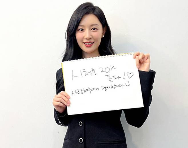 해당 게시물에는 시청률 20% 돌파를 축하하는 김지원의 사진이 담겨 이목을 집중시켰다.