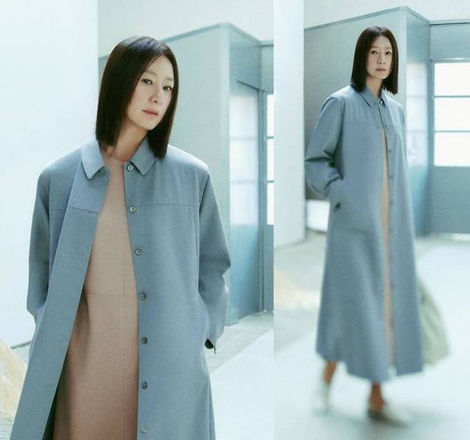 김희애가 착용한 '쁘렝땅' 니트 트위드 재킷은 앞중심과 소매 끝부분에 손뜨개 디테일, 금방 버튼 디테일이 더해져 세련되면서 클래식한 매력을 더해준다.