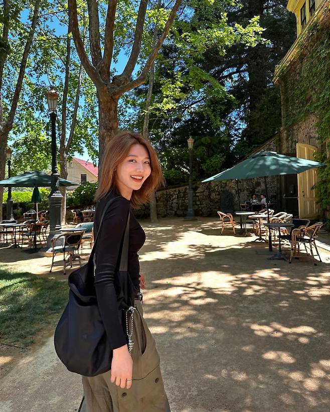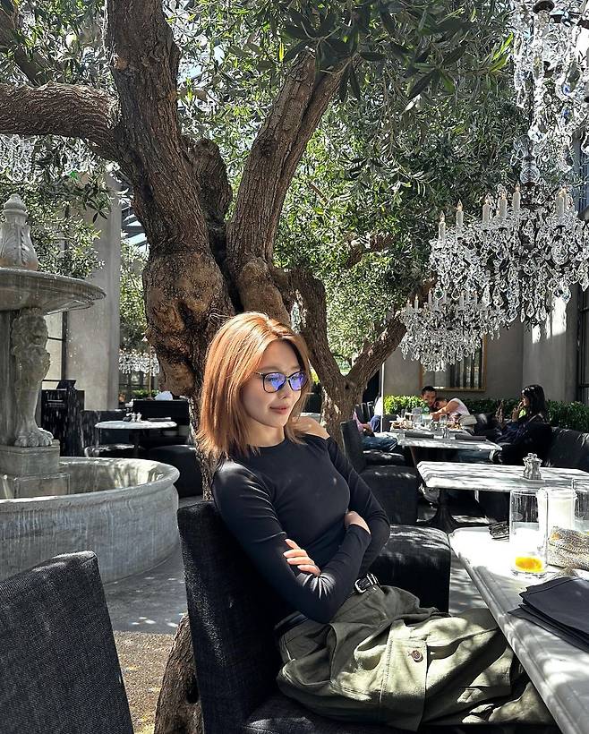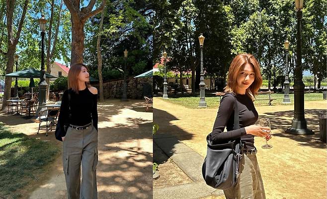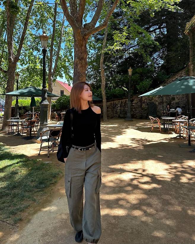 사진 속 최수영은 원숄더라인 블랙 티를 입고 카키색 카고 바지를 입어 데일리룩을 선보였다.