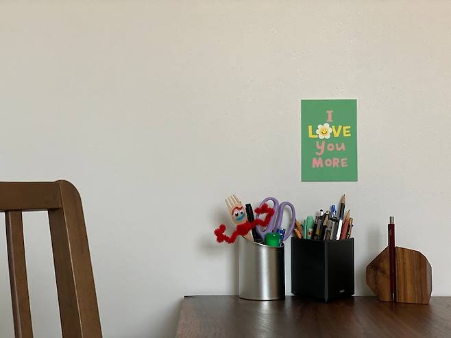 하얀 벽은 어떤 소품을 놔도 잘 어울리는 것 같아요. 때마다 예쁜 포스터들로 꾸며주고 있어요.