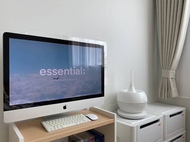 모니터를 타고 자라는 넝쿨식물이에요. 2년 정도 잘 키우다가 이사 오면서 식물이 요단강을 건넜지 뭐예요. 다시 새로운 마음으로 키우기 시작했어요. 트리안이 코너를 지나면 푸릇푸릇 정말 예뻐요. 반려식물로 추천합니다 :)