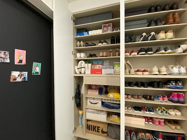 신발장 크기는 작은 편이 아닌데 아이가 생기니 신발도 점점 많아지네요. 둘째가 걷기 시작하면 더 많아지겠죠? 아무래도 조만간 신발 정리대를 사야겠어요.
