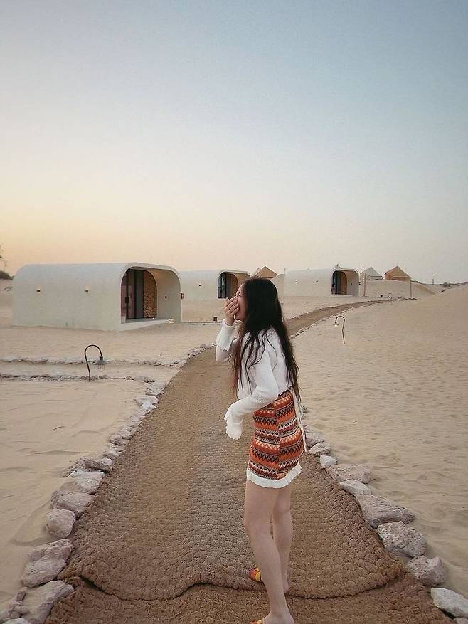 #스타패션 #에일리패션 #허니문룩 #니트스커트 #글램핑룩 #두바이사막 #리조트패션 #TerraSolis #DubaiStyle #DesertVibes