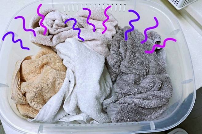 일단 세탁 전 젖은 수건 그대로 던져두기보다 건조대에 걸어 말려 두시다가 세탁하는 게 좋아요. 세탁을 해도 쉰내가 난다면 가스불에 팔팔 삶아주는 게 좋겠지만 요즘처럼 더운 날은 엄두가 안나죠.