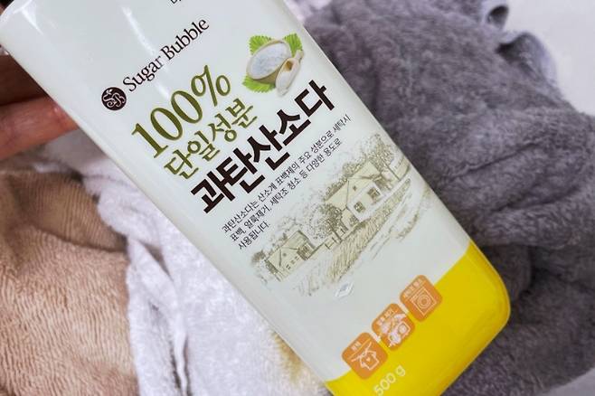 이럴 때 삶지 않고도 수건 쉰내 없애는 비법 소개할게요. 바로 과탄산소다를 활용하는 건데요. 과탄산소다 용도 보시면 '삶은 듯한 효과를 줄 수 있다'라고 되어 있더라고요.