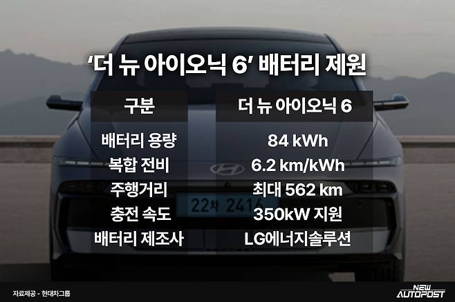 아이오닉 6가 특히 40~50대 가족 고객들에게 인기를 얻는 데에는 주행 성능과 실내 공간 활용도가 중요한 요소로 꼽힌다. 롱레인지 모델은 84kWh의 4세대 배터리를 탑재해 국내 전기차 중 최장인 562km의 1회 충전 주행거리를 확보했다. 장거리 운전이 잦은 가정에서 전기차 충전 걱정을 덜 수 있는 부분이다.