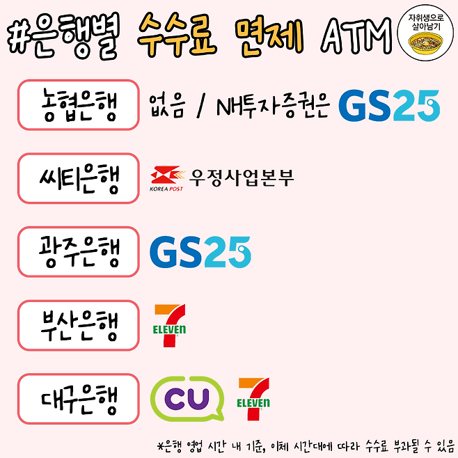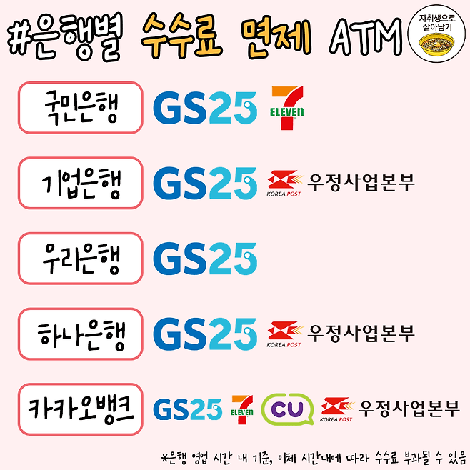 수수료 면제되는 각 은행별 공용 ATM기계 총정리