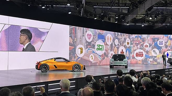 토요타는 재팬모빌리티쇼 2023에서 컨셉카와 함께 3가지 모빌리티의 미래를 전했다. 무대에 오른 사토 코지 토요타 사장은 토요타의 미래 모빌리티의 미래를 3가지 주제로 전했다.
