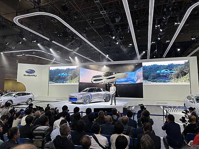 그리고 이어 무대 뒤에서 등장한 컨셉 모델은 '에어 모빌리티 컨셉'. 전동화와 자율주행 기술이 더해진 항공 모빌리티에 대한 기대가 커지는 가운데, 스바루도 이를 실현하기 위한 컨셉 모델을 소개해 관심을 모았다. 실제 스바루의 항공우주 부문과 자동차 엔지니어가 서로 협력해 실증실험을 진행하고 있다고 한다.
