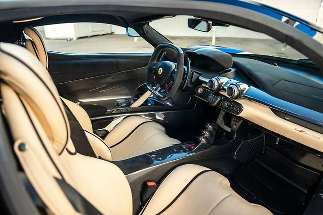 그가 구매한 라 페라리는 블루 엘레트리코 컬러가 가장 눈에 띄는 부분이기도 하지만, 인테리어의 시트와 도어 핸들, 대시보드의 아래를 장식하는 크레마 가죽 덕분에 더 특별하다고 여겨진다.