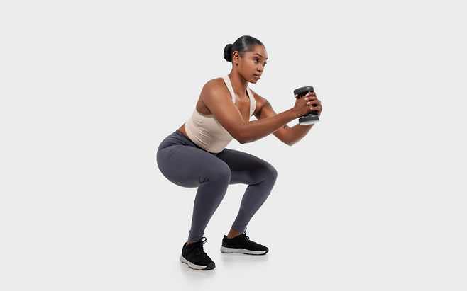 내려갈 때 숨을 들이쉬고, 일어날 때 숨을 내쉬며 복부를 조여야 허리·무릎이 동시에 안전선 안에 머뭅니다.