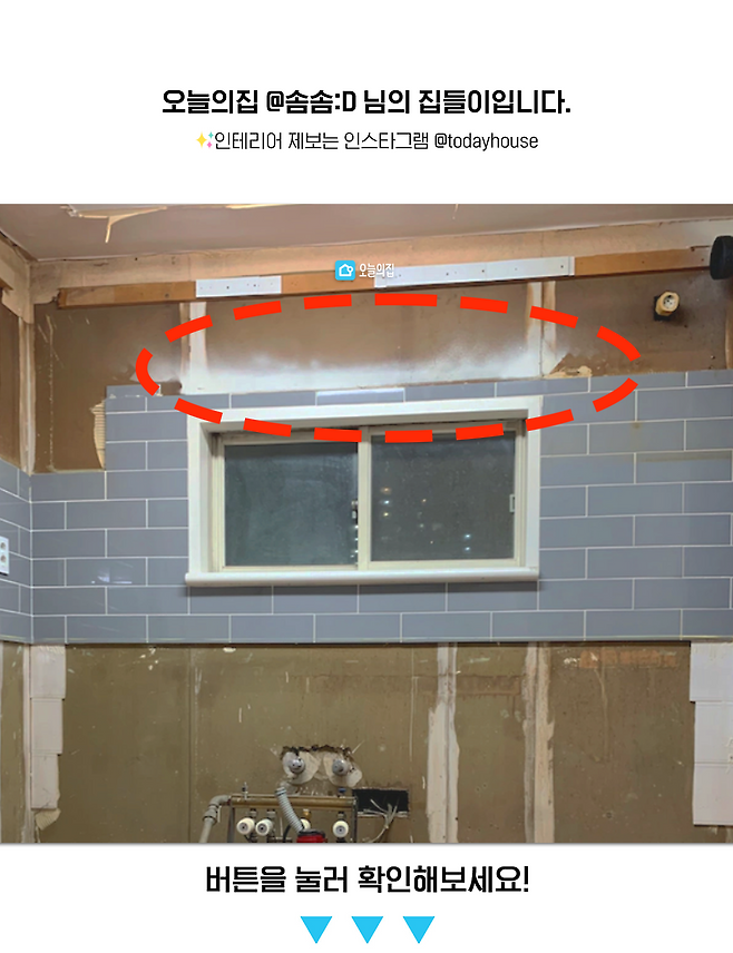 주방 타일 역시 정말 마음에 들지 않아서 타일도 인테리어 사장님과 머리 맞대고 여러 샘플들도 보고 골랐답니다. 상부장을 다 뜯어도 주방 창문이 정말 답답해 보여서 샷시도 급 교체를 하게 되었어요.