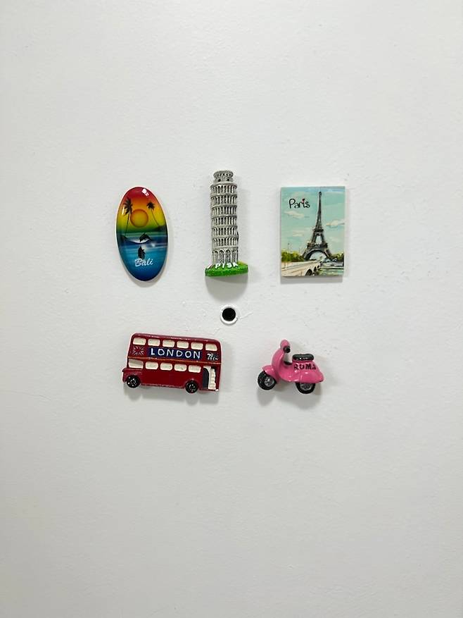 다시 여행을 가고 싶은 마음에 그동안 모아뒀던 자석을 조금씩 붙여두었어요. 저랑 신랑의 취미는 여행이라 아기 낳기 전 40일 동안 유럽 여행도 다녀오고 가까운 해외나 국내로도 자주 여행을 다녔거든요. 얼른 예전처럼 자유롭게 여행을 할 수 있게 되면 좋겠어요.
