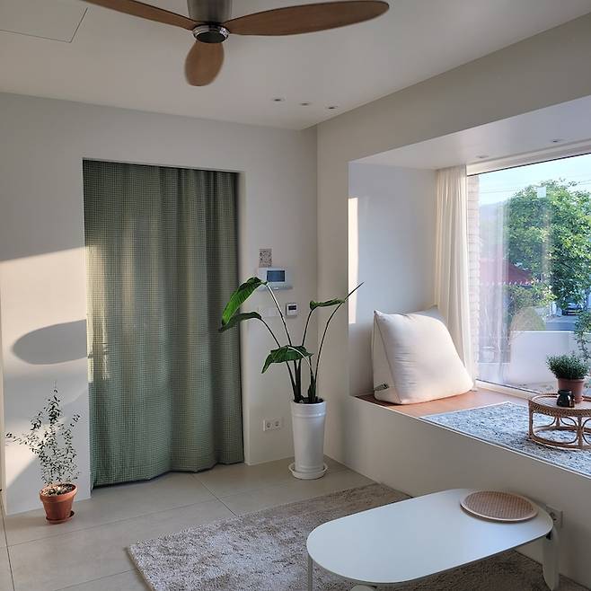 만약 저희 집에 고양이를 키웠다면 통창 앞 창가 자리에서 많은 시간을 보내지 않았을까 싶어요. 처음 놀러 온 친구들과 손님들도 꼭 저 자리에 누워 잠을 자거나 쉬더라구요:)