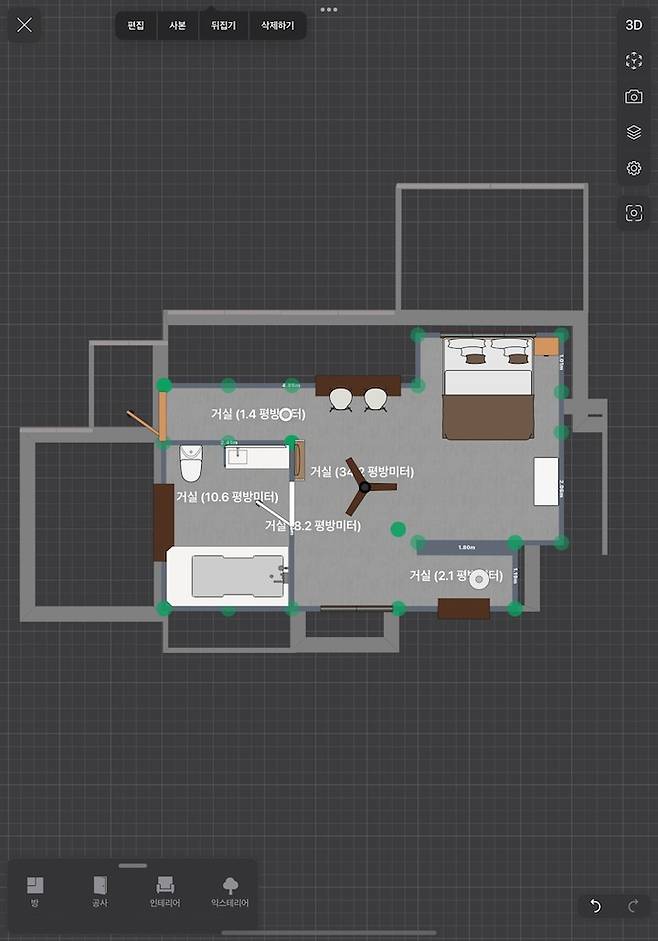 연간 사용료를 지불해야하는 유료 어플이지만 색감부터 가구까지 지금의 저희 집과 거의 똑같이 구현해 낸 직관적이고 사용하기 쉬운 인테리어 어플입니다.