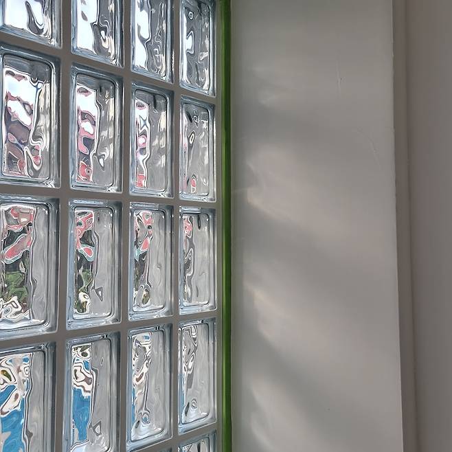 오후 1시가 되면 욕실의 유리블록 너머 햇살이 무지개빛으로 드리웁니다. 반짝반짝 유리블록이 예뻐서 일부러 이 시간이 되면 화장실 문을 열어놓곤 해요.