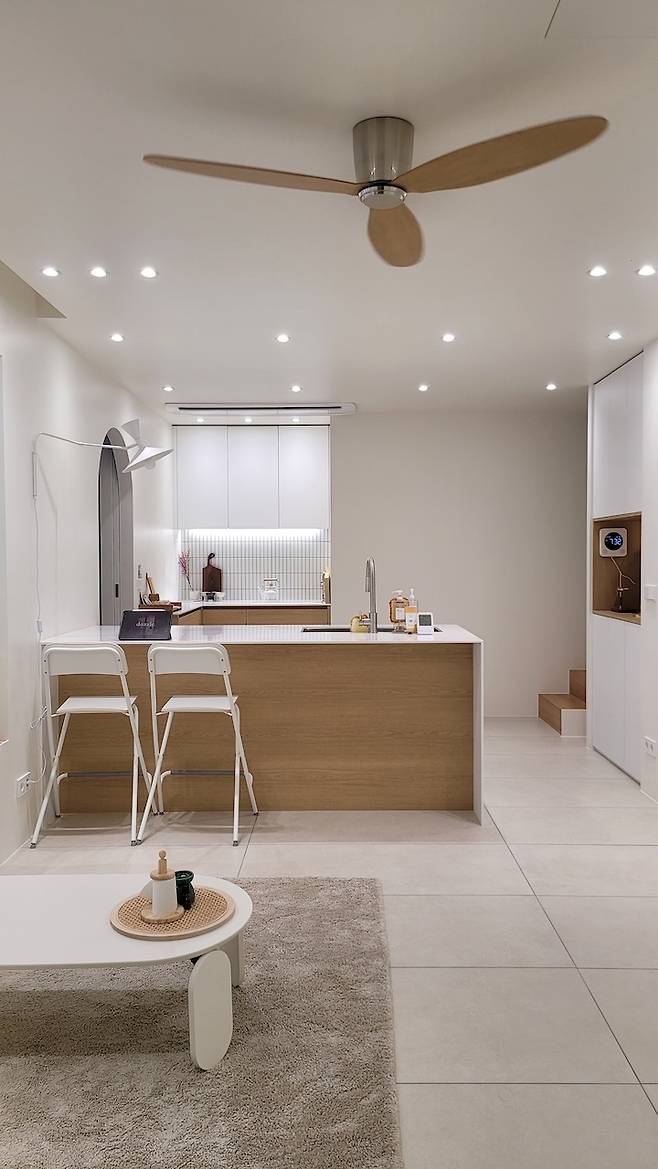 주방 아일랜드와 후면 주방 사이에는 아치형 도어가 있습니다. 이 공간은 아래에서 소개할게요:)