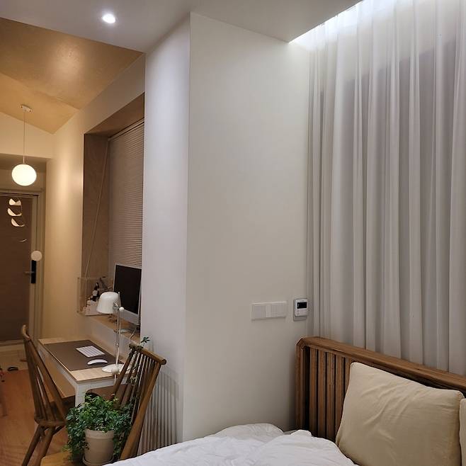 누운 채 바라보는 천장. '감성스테이 같은 공간에서 365일 머물고 싶다'는 바람 그대로 잘 구현하였습니다.