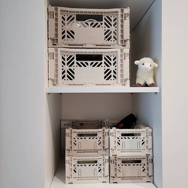 자주 꺼내보지 않으면 바구니에 담긴 물건을 잊어버리기 때문에 바구니를 자주 꺼내어 보고 배치도 바꾸며 물건 정리를 소홀히 하지 않고 있어요.