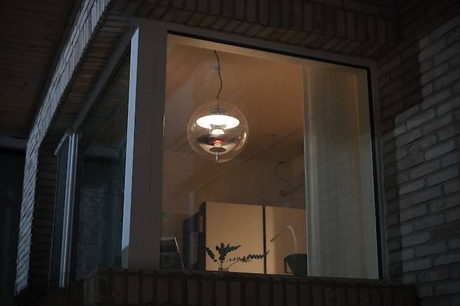 그리고, 바깥 현관에서 바라본 불 켜진 서재. 서재에는 많은 식물들이 있어요. 덕분에 산소방 독서실만큼이나 쾌적한 서재입니다.