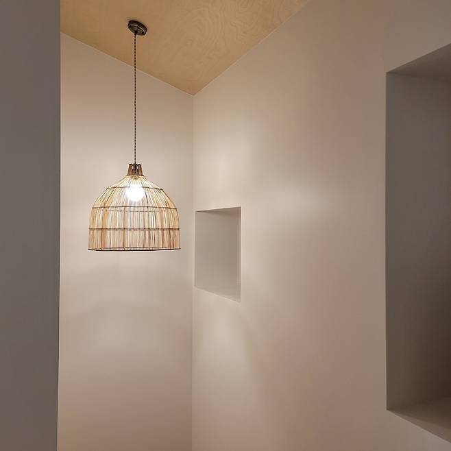 박공형 지붕 라인에 달고 싶어 직접 만든 라탄등이에요. 라탄 갓을 만든 후 여기에 어울리는 전구와 소켓, 소켓선과 후렌치까지 직접 구매해서 조립했어요. 비 오는 날 창문을 열어두고 등 아래에 앉아 있다 보면 동요하던 마음이 잔잔해지는 것 같아요.