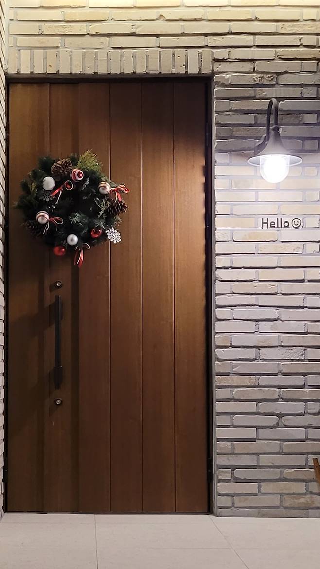 나중에 현관문을 설치한다면, 꼭 하고 싶다고 찜해 둔 디자인이 있었어요. 크리스마스 리스가 무척이나 잘 어울리는 키다리 현관문. 특징이라면, 손잡이가 세로로 길고 낮은 위치까지 연결되어 있어요.