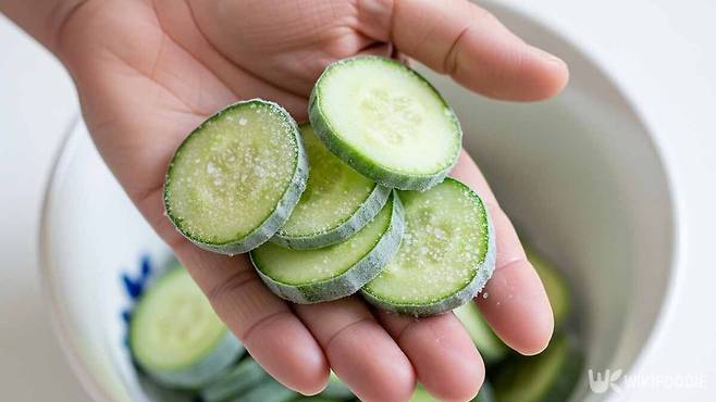 먼저 오이는 깨끗이 씻은 뒤 2~3mm 두께로 얇게 썬다. 얇게 썰수록 해동 후 사용이 쉬워진다. 썬 오이에 소금을 조금 뿌려 10분 정도 절여둔다. 이 과정이 중요하다. 절이는 동안 수분이 빠져나가 냉동 후에도 덜 무르고 아삭함이 남는다.