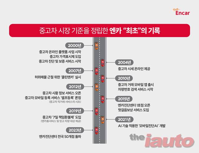 2000년 중고차 온라인 플랫폼 시대를 연 엔카닷컴(과거 SK엔카)은 창립시기부터 현재까지 판매자와 구매자의 건강한 거래가 이루어질 수 있도록 중고차업계의 기준이 되는 서비스들을 최초로 선보이며 성장해왔다. 먼저, 창립년도인 2000년에는 중고차 가격 표시제와 중고차 진단 및 수리보증 서비스를 업계 최초로 도입하며, 레몬마켓인 중고차 시장에서 투명성과 신뢰 키워드를 제시해 시장 판도를 바꾸었다.