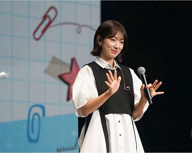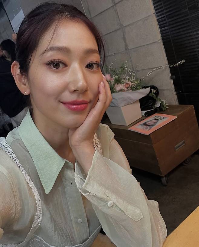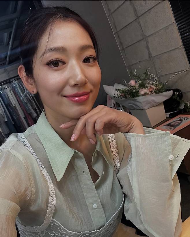 박신혜가 은은한 민트색 셔츠와 시스루 소재가 믹스된 디테일로 내추럴하면서도 우아한 분위기를 연출했습니다.