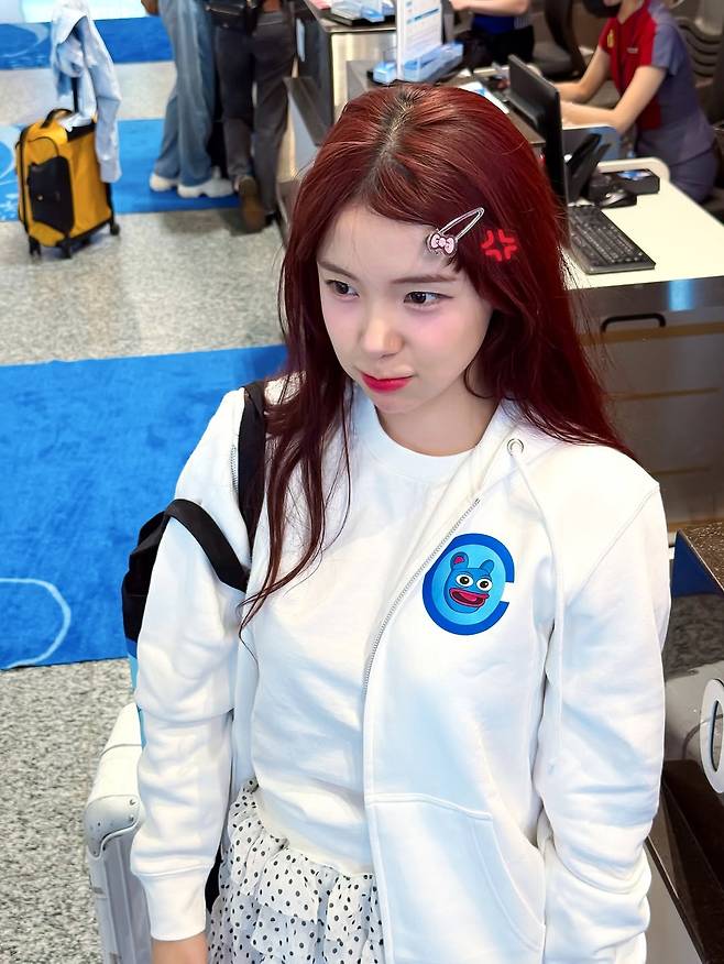 여기에 붉은빛이 도는 헤어스타일과 헤드폰, 장난기 가득한 표정이 더해져 그녀만의 '꾸러기' 매력을 한층 더 돋보이게 합니다.