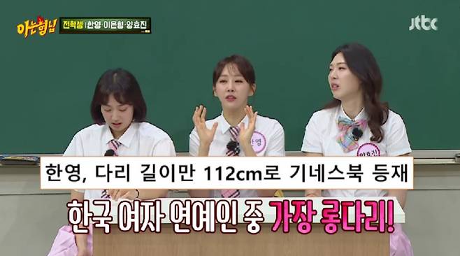 한영은 자신의 다리 길이가 112㎝라고 밝히며 "한국 여자 연예인 중 가장 긴다리로 한국 기네스북에 등재됐다. 계속 방송에 나와 얘기했는데 누구도 이의를 제기하지 않는 것 보니 맞는 것 같다"고 덧붙이기도 했습니다.