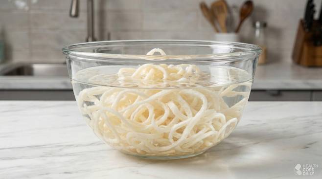 2. 체에 밭쳐 물기를 빼고 키친타월로 눌러 남은 수분을 제거한다.