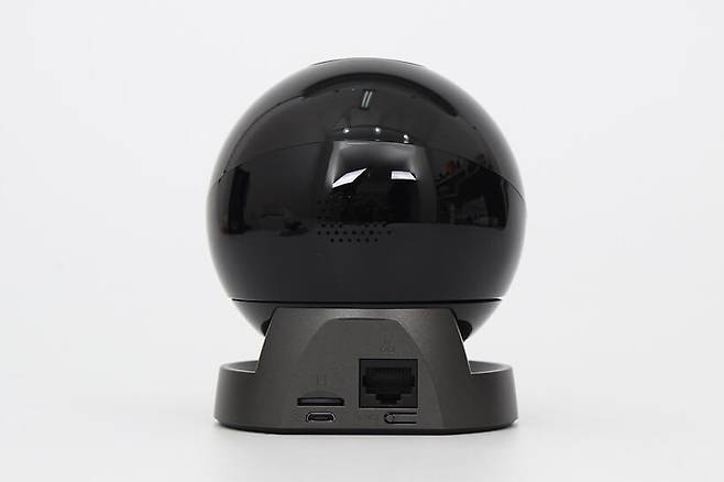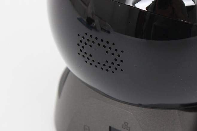 후면 포트 바로 위 구체의 뒷면에는 내장 스피커가 자리 잡고 있어서 경보음을 울리거나 원격으로 음성을 전달할 수 있다.