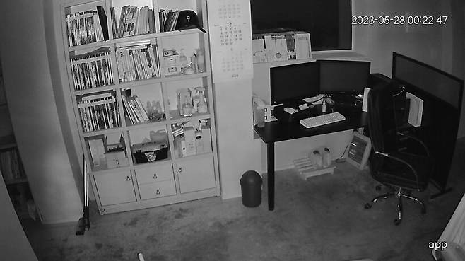 야간에는 자동으로 적외선 모드로 전환되기 때문에 조명이 모두 꺼진 상황에서도 동영상과 사진이 또렷하게 기록되어 보안용으로도 부족함이 없다.