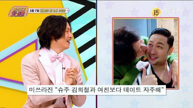 슈퍼주니어 김희철과 에픽하이 미쓰라와의 열애설이 언급됐다. 김희철은 “언젠가부터 미쓰라가 에픽하이 멤버들에게 비밀로 하고 나를 은밀하게 접선하고 다닌 바람에 이상해졌다”고 밝히며 “미쓰라 차의 승차감이 좋아 그의 조수석에 자주 타고 다녔고, 결국 그 차랑 똑같은 걸로 바꿨다”라며 루머가 생길 수밖에 없었던 상황을 실토했다.