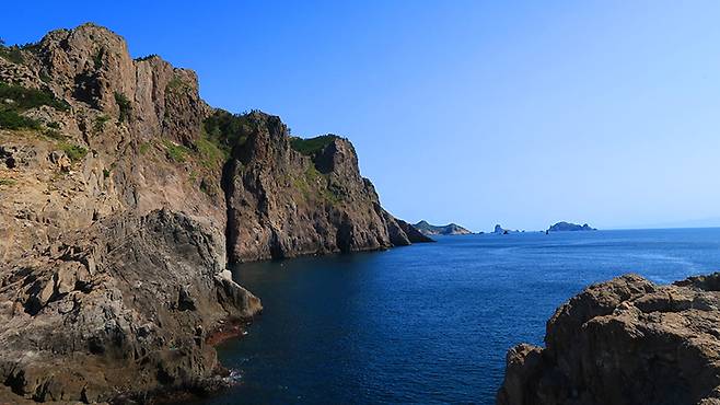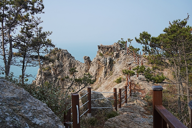 이름처럼 하늘과 맞닿은 듯한 절벽 능선을 걷는 경험이 이 코스의 핵심이다.특히 능선 폭이 약 1m에 불과한 구간이 이어지며, 양옆으로는 기암절벽과 해수면이 동시에 펼쳐진다.
