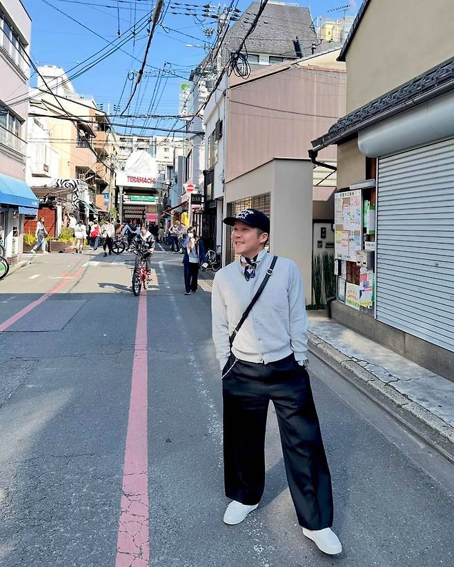 "2~3년 전에 산 카디건이 있었어요. 늘 아껴뒀는데 신혼여행 첫날이니까 의미 있게 입고 싶더라고요. 아내와 커플룩을 맞춰 입고 거리로 나섰죠."