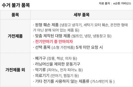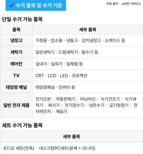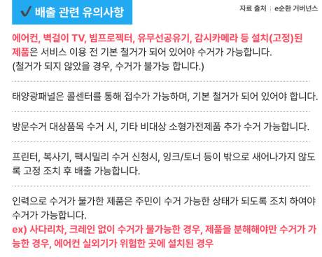 위 제품들은 수거가 불가하니 신청 전 확인이 반드시 필요합니다.
