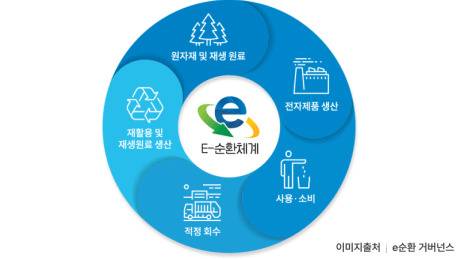 제품 생산, 소비 이후 폐기하지 않고 재사용, 재활용하여 지속가능성을 추구하는 자원순환형 경제 시스템으로 폐전자제품의 올바른 배출 이후 적절하게 회수하여 친환경적으로 재활용하는 방식입니다.