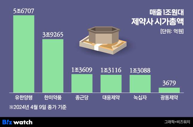 수익 구조가 편중돼있는 가운데 신약 후보물질 마땅치 않아 기업가치도 저평가돼있다는 평가를 받는다. 지난 9일 종가 기준 광동제약의 시가총액은 3679억원으로 매출 1조원대 전통 제약사 중 가장 낮다. 5개 제약사(유한양행·한미약품·종근당·녹십자·대웅제약)의 평균 시가총액은 2조7157억원으로 광동제약의 약 8배다. 광동제약과 시가총액이 유사한 제약사는 매출액 2000억원대인 영진약품, 유나이티드제약 등이 있다.