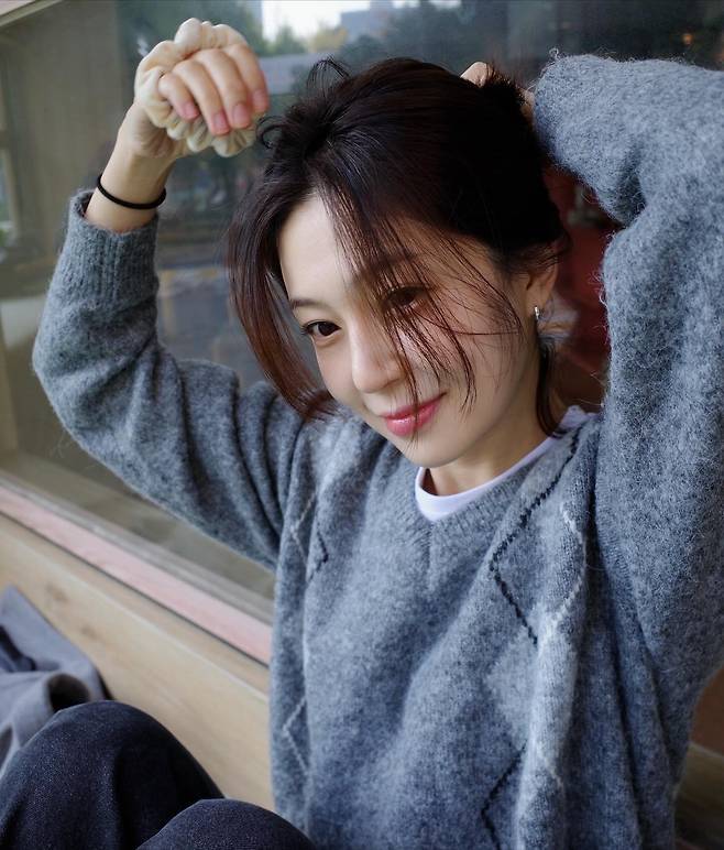 자연스럽게 먼 곳을 응시하는 그녀의 편안한 미소와 차분한 배경이 어우러져 한 폭의 감성적인 화보 같은 분위기를 자아내고 있답니다.