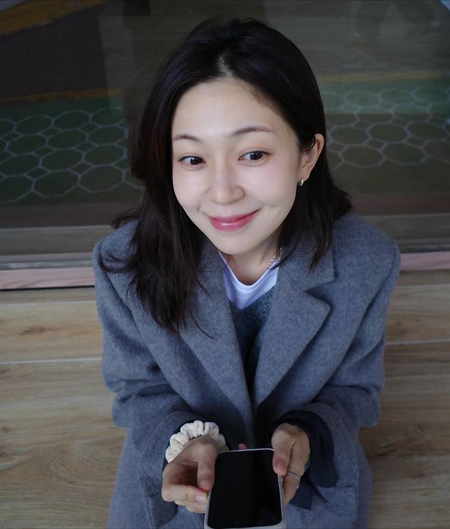 사진 속 백진희 씨는 화이트 티셔츠에 짙은 그레이 니트 조끼를 레이어드하고, 그 위에 군더더기 없는 실루엣의 그레이 코트를 매치해 포근하면서도 세련된 룩을 선보였는데요.