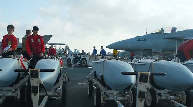 이날 미 해군의 해리 S.트루먼 항모와 칼 빈슨 항모에서는 홍해 상공을 훤히 들여다 보는 E-2D 호크아이 조기경보통제기와 함께 24시간 동안 F/A-18E/F 슈퍼호넷 전투기들,