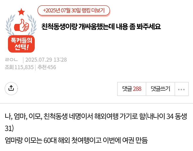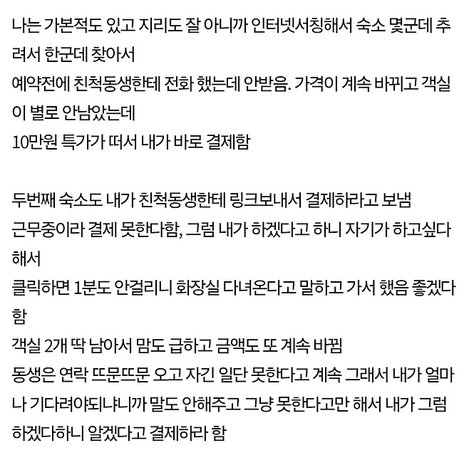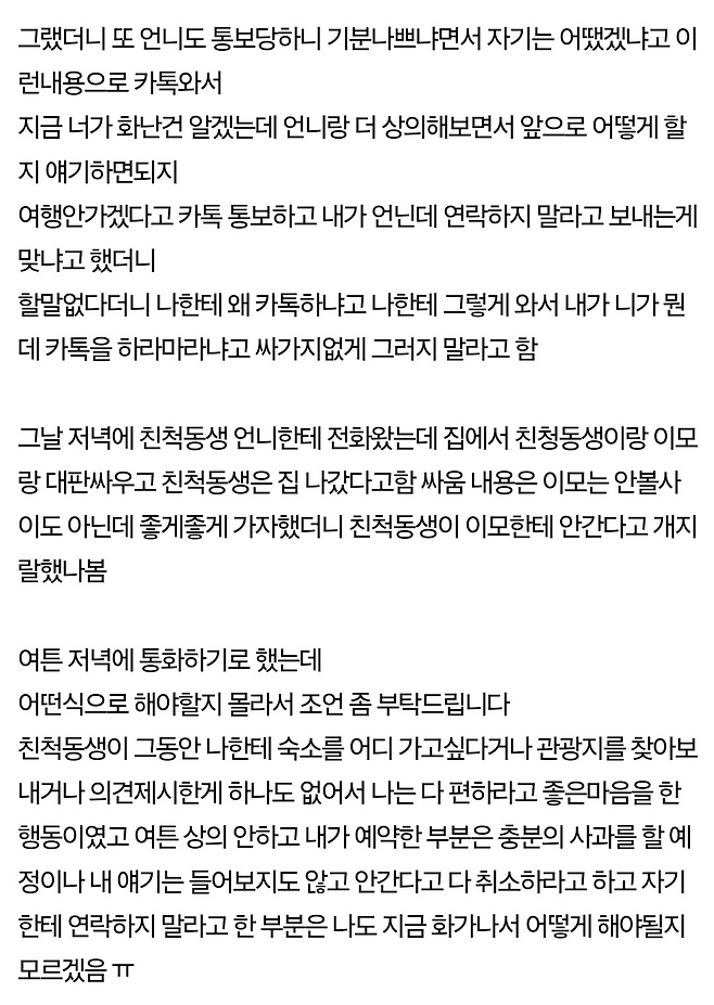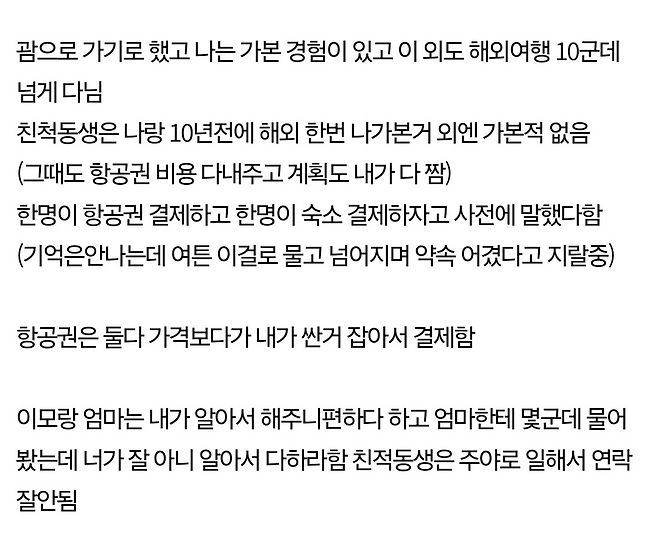 가족여행 예약하다 친척동생이랑 개싸움함