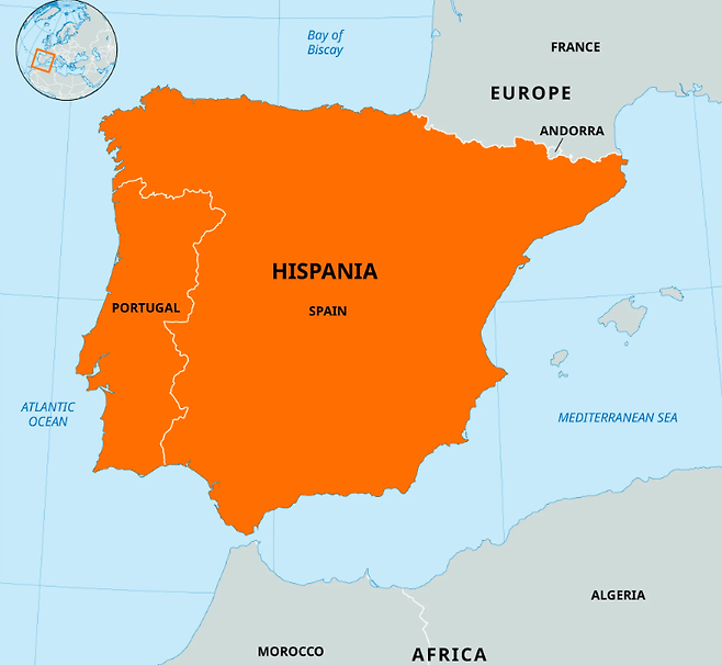 포르투갈이 독립하면서 스페인만을 가리키는 지명이 되었죠.