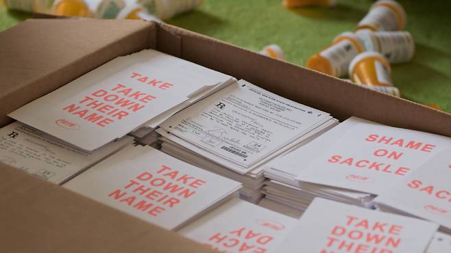 추악한 블러드 머니는 미술업계와 정치와 연결되어 있었다. 이로 인해 이득을 취한 제약 회사의 돈이 미술관, 박물관, 대학교의 후원 자금으로 흘러들어 자금 세탁에 기여하게 되었다. 낸 골딘은 자신의 막강한 영향력을 이용해 2017년 P.A.I.N(처방 중독 즉각 개입)이라는 단체를 만들었다. 평범한 사람을 약물이란 늪에 빠트리고 중독의 길로 안내한 제약 회사들을 강력히 비판하게 된다.