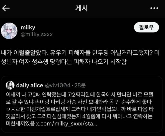 ์ฌ๊ฑด์ 2025๋ 2์ 27์ผ ์คํ 5์๋ถํฐ 7์ ์ฌ์ด, ๋ฐํค๊ฐ ์์ ์ X ๊ณ์ ์ โ์ผ๋ณธ์ธ ์ ํ๋ฒ ์ ์ฐํค์๊ฒ ์ ์๋ฆฌ์์ ์ฑ์ถํ์ ๋นํ๋คโ๋ ๊ธ์ ์ฌ๋ฆฌ๋ฉด์ ์์๋์ด์. ๋ฉ๋ถ๐คฏ
