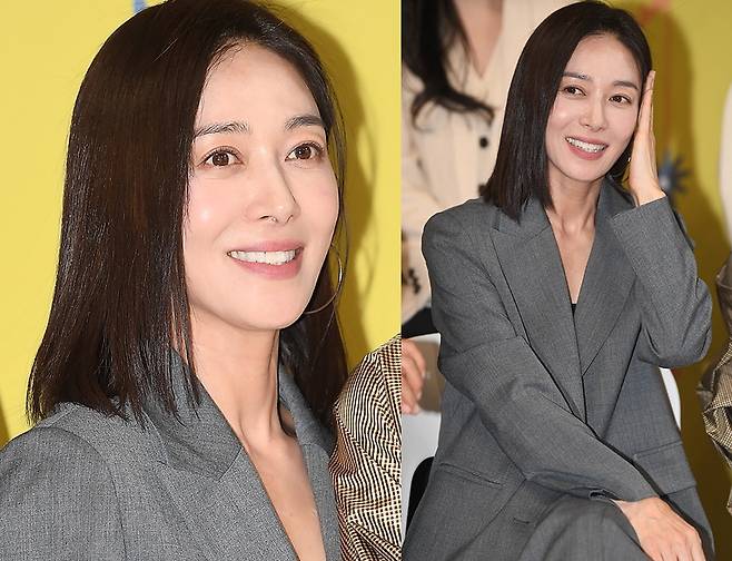 장영남은 톤온톤의 그레이 컬러 슈트 셋업으로 클래식하면서도 단단한 이미지를 강조했으며, 재킷의 테일러드 라인과 여유 있는 핏이 세련된 인상을 더했습니다.